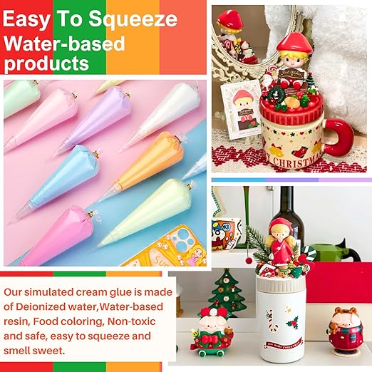 - Perfect 2024 top Christmas gift: Decoden Cream glue can be used to make Christmas decorations such as picture frames, phone cases, crystal balls, small Christmas trees, cards, cookie and any handmade Christmas decorations. Use your ideas to make loving gifts for the people you love the most!