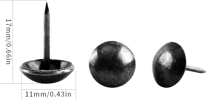 - ★Dimensions and quantities: Diameter of upholstery nails head - 11 mm, total length of upholstery nails - 17 mm, quantity - 500 pieces, color - Black.