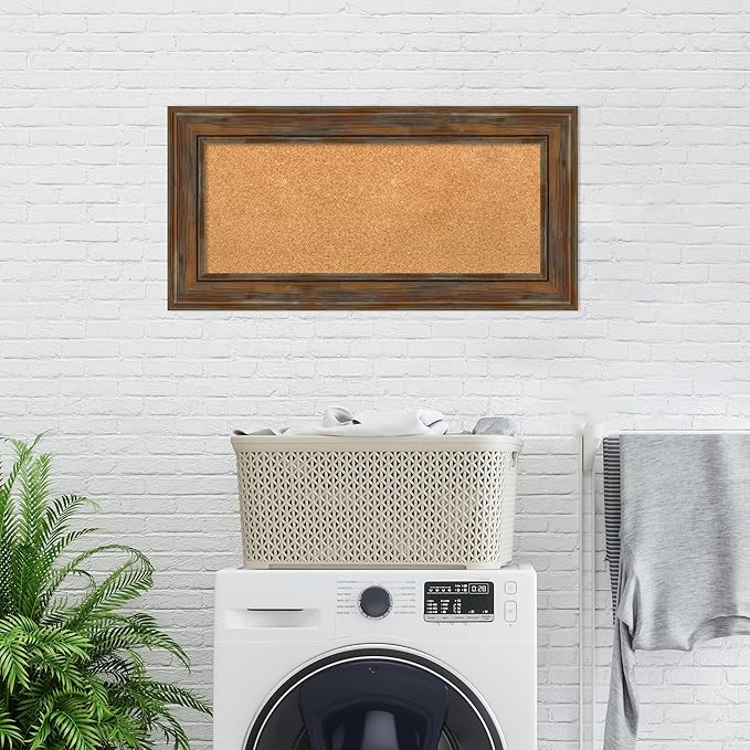 Amanti Art Natural Cork Board for Wall, 18x36 Vision Board with Brown Wood Frame, Medium Corkboard Office Decor for Home Organization, Country Rustic Corkboard Pinboard to Display Items for Home