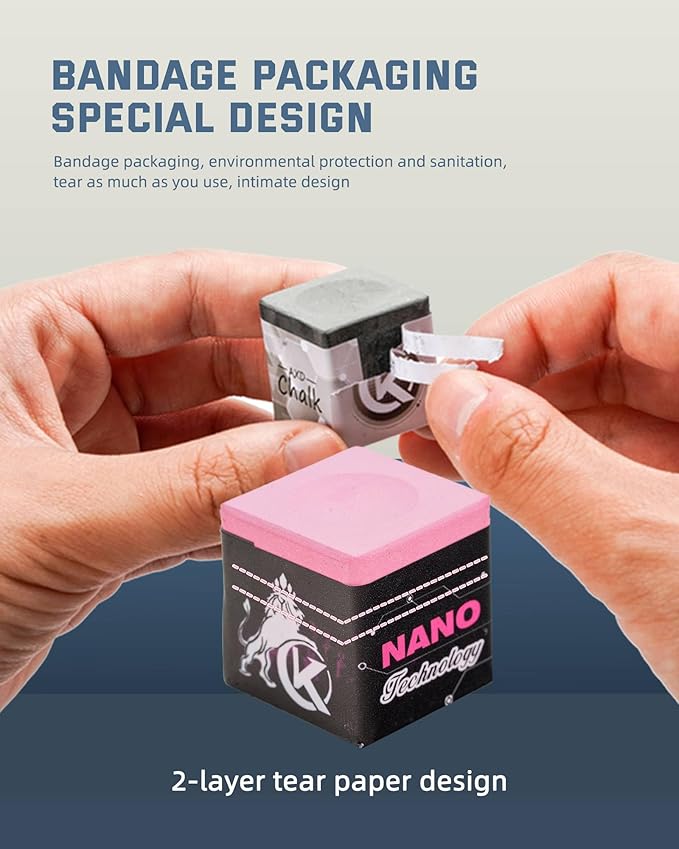 - Nano Technology: KONLLEN pool hand chalk utilizes revolutionary nano-materials, ensuring an ultra-fine texture with superior adhesion. It resists flaking and spreading, making it more environmentally friendly and healthier. With KONLLEN, you can achieve the best feel and performance in any condition.