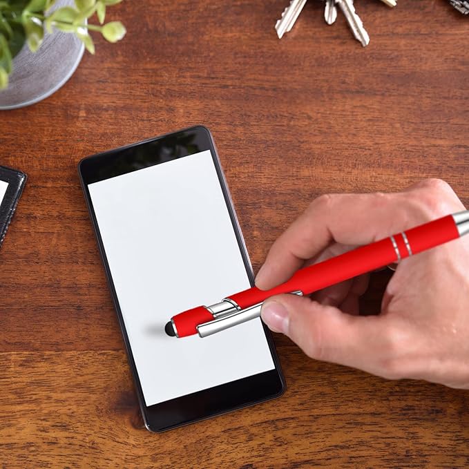 - 2-in-1 design stylus: Touch screen stylus and ballpoint pen; one end has a sensitive stylus and the other end comes with a high quality blue ballpoint pen for ease of use; you can use this pen to take notes on your tablet, phone or computer screen