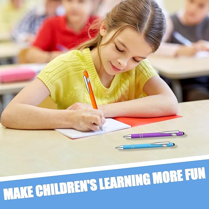 - You will get: 12 pieces ballpoint pens with stylus tip, enough for your daily needs and replacements; The size of a single metal stylus pen with stylus tip is 5.5 x 0.4 inch/ 14 x 1 cm, which is the proper size for a pen; Note: The ink is blue
