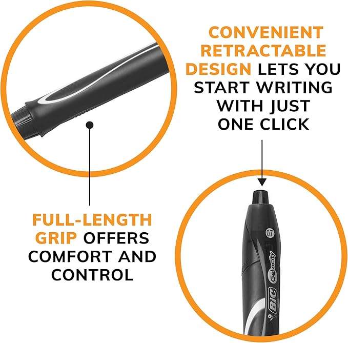 - One 12-count pack of BIC Gelocity Quick Dry Assorted Colors Gel Pens