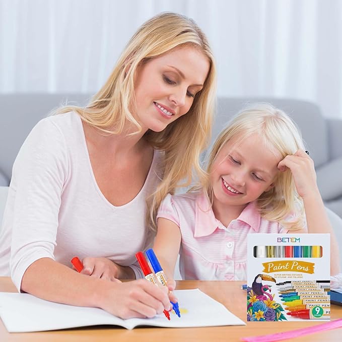 Betem 9 Colors Dual Tip Oil Based Paint Markers Acrylic Paint Pens(0.7mm & 3mm),Permanent,Waterproof,Quick Dry,for Rock Painting,Wood,Plastic,Metal,Canvas,Glass,DIY Crafts,Art Supplies