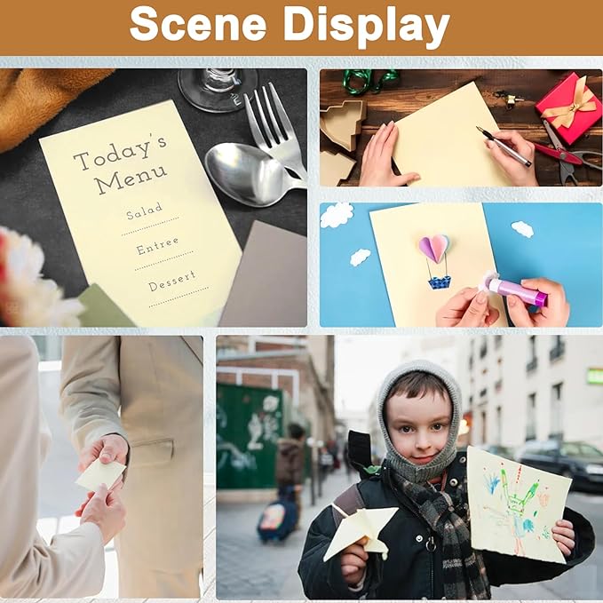 - ▶COMPATIBILITY: Sturdy and versatile, our cream card stock printer paper is compatible with most types of inkjet, laser printers, die cut machine and cricut cutting machine. Consult your printer manual to ensure it can print on 92lb Cover / 250gsm before ordering