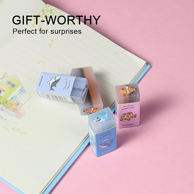 • Fun Sea Animal Erasers: Enjoy adorable sea creature-shaped erasers