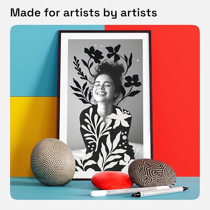 ARTISTRO 2 Black&White Dual-Tip Acrylic Paint Pens - Multisurface Markers for Fabric, Plastic, & More, 5mm Dot + 1mm Fine Tips