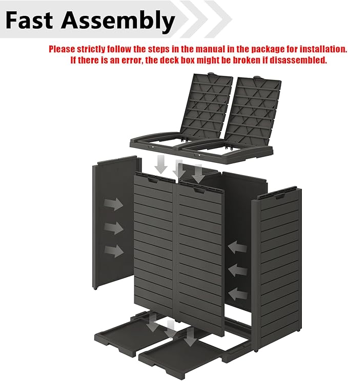 - Quick Install - This outdoor trash bin comes with a detailed user manual. No screws or tools required, just snap the panels together and the installation can be completed in about 10 minutes. For more support, please refer to the installation videos on the page.