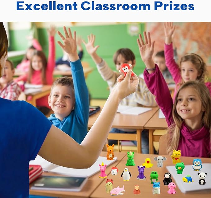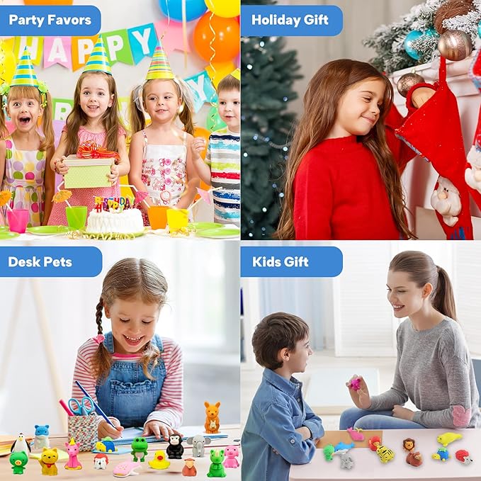 - Versatile Uses - These animal erasers bulk are suitable for various occasions such as Valentine's Day, Christmas, Easter, Halloween, kids parties, back to school season. Animal erasers are perfect for desk pets, kids party favors, classroom prizes, Easter egg fillers, treasure box toys, goodie bag favors, Pinata fillers, game prizes, stocking stuffers, etc