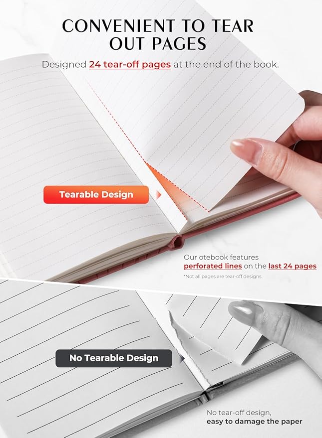 - 【Upgraded product】 We upgraded our product, the pocket notebook will no longer have the problem of cracked binding. Our small notebook features perforated lines on the last 24 sheets, so tear-outs could be hassle-free.