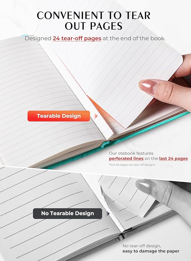 - 【Upgraded product】 We upgraded our product, the pocket notebook will no longer have the problem of cracked binding. Our small notebook features perforated lines on the last 24 sheets, so tear-outs could be hassle-free.