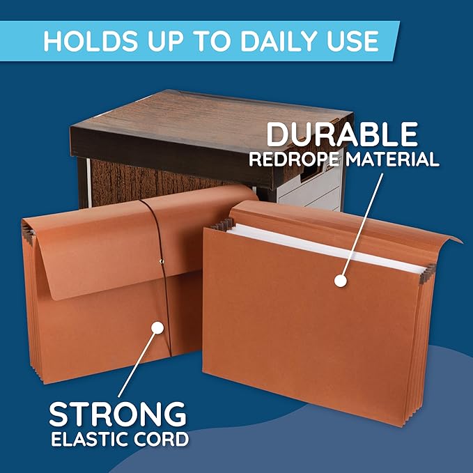 Blue Summit Accordion File Wallet with Flap and Cord Closure, Legal Size, 3” Expansion – 10 Pack