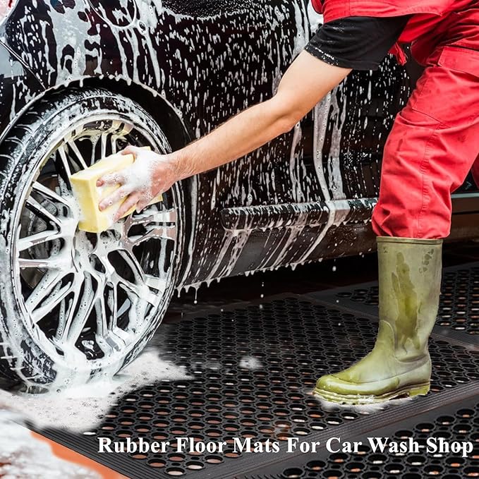 - - The drainage holes in these rubber floor mats can reduce the amount of slippery liquids and oils left on the floor, Anti Fatigue Design for backside to keep the Drainage Mat Stay in place.