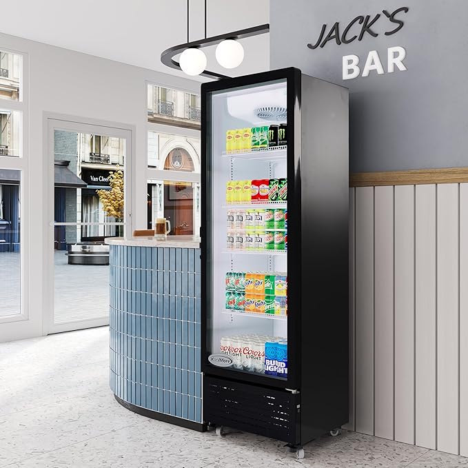 KoolMore KM-MDR-1GD-10C 23 in. One Glass Door Commercial Display Merchandiser Refrigerator Cooler in Black, ETL Listed, 10 cu. ft