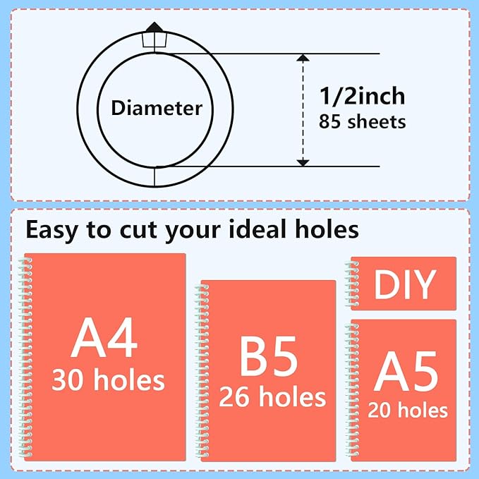 - Refillable 85 sheet spiral binding paper: Each spiral binding coil is with maximum capacity 85 sheets of refilling paper, making them a cost-effective and convenient choice for all your binding needs.