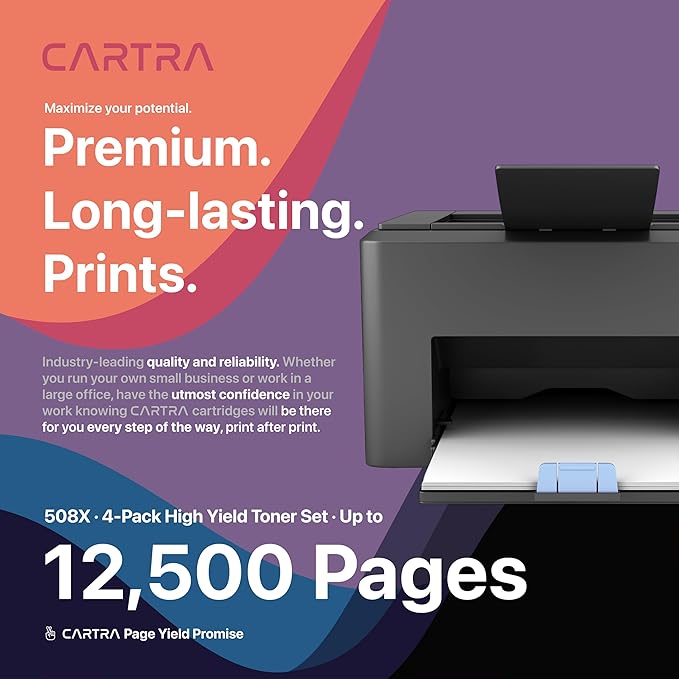 - Crafted from recycled materials, CARTRAโs 508A toner delivers top print quality with eco-friendly impact. Backed by US-based support and a commitment to customer care, it reflects our dedication to sustainability, reliability, and excellent service