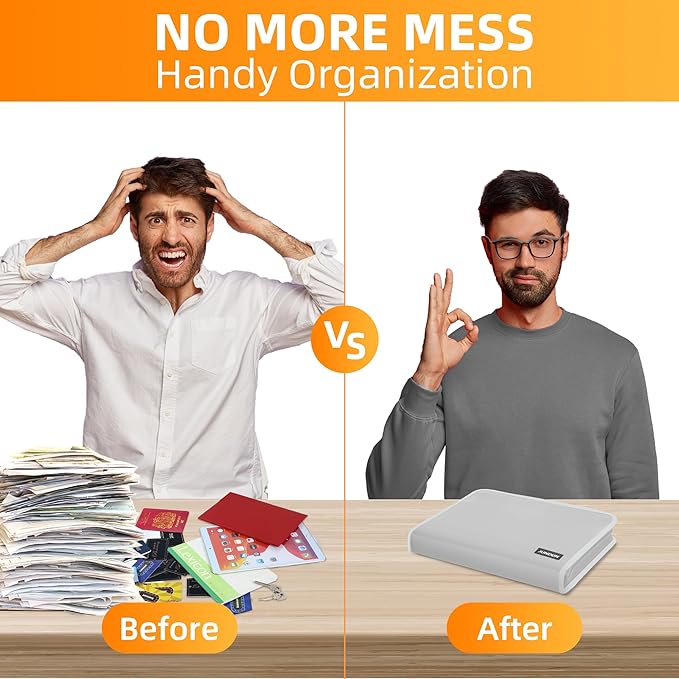 - PREMIUM MATERIALS: Secure your documents with our fireproof file organizer. Crafted from three-layered, non-scratchy fiberglass coated with silicone, it can withstand temperatures up to 2000℉. It's also passed rigorous testing (SGS Test: UL94 VTM-0 Certified) and offers high water-resistance for unexpected spills. Keep files neat and accessible with ease using our accordion file organizer. Elevate your protection today!