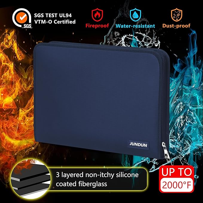- PREMIUM MATERIALS: Secure your documents with our fireproof file organizer. Crafted from three-layered, non-scratchy fiberglass coated with silicone, it can withstand temperatures up to 2000℉. It's also passed rigorous testing (SGS Test: UL94 VTM-0 Certified) and offers high water-resistance for unexpected spills. Keep files neat and accessible with ease using our accordion file organizer. Elevate your protection today!