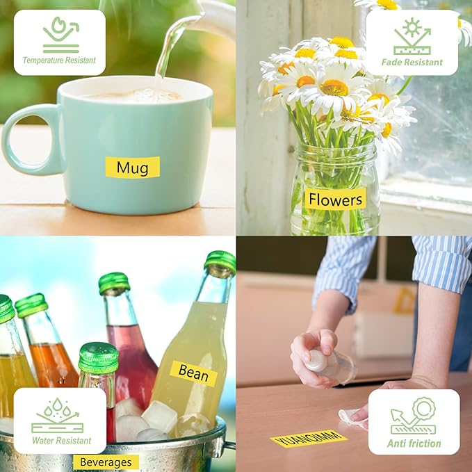 - Product Size: Width: 9mm 0.35 inch, Length: 26.2 feet (8m) for each 9mm 0.35 inch laminated yellow label tape
