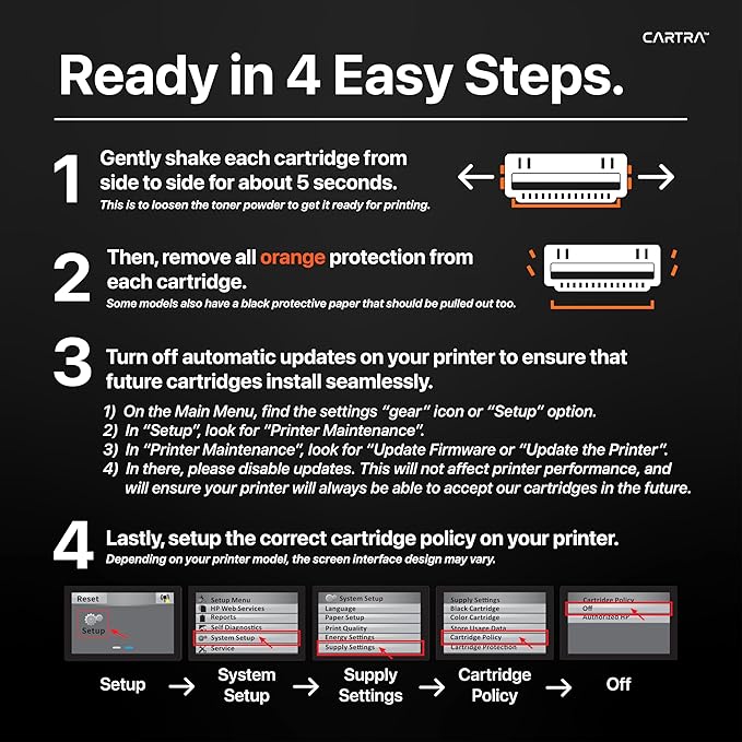 - US-based customer support: Cartra provides robust customer support from their dedicated team based in the United States, ensuring quick and effective assistance for any issues or questions regarding their toner products, backed by extensive industry experience.