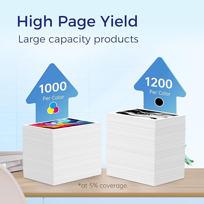 - Page Yield: Replacement for hp ink 910xl black and color combo pack each 910 xl black ink cartridges for hp printers can produce up to 1,200 pages, while the hp910xl/910 multipack xl color ink cartridges offer 1000 pages each, based on 5% coverage.