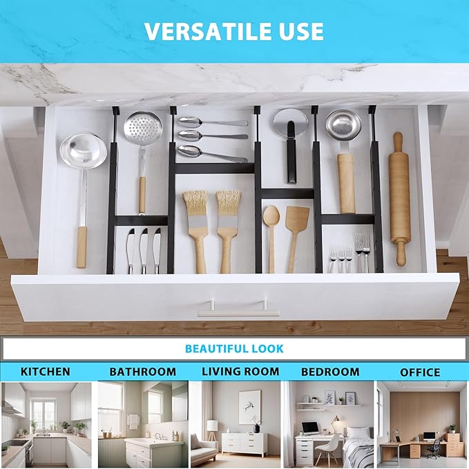 - DRAWER FRIENDLY DESIGN: The ends of our drawer dividers feature non-slip pads to keep them in place and protect your drawers from scratches, keeping your utensils, clothes and cosmetics safe enough