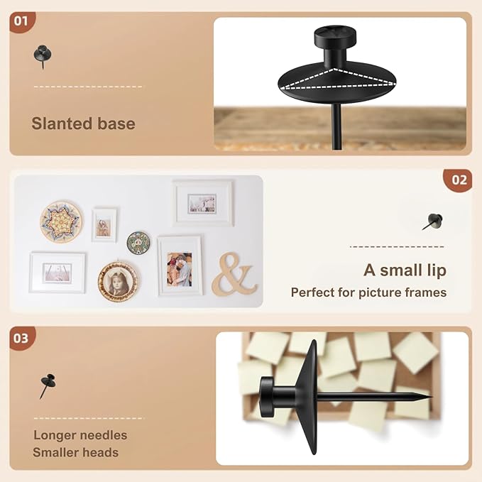 - Secure Hold: Despite their compact size, these hanging nails and thumb tacks boast impressive strength, securely supporting up to five pounds each. Perfect for picture frames, tapestry hangers, and other wall decorations, you can trust these wall tacks for hanging to keep your items firmly in place
