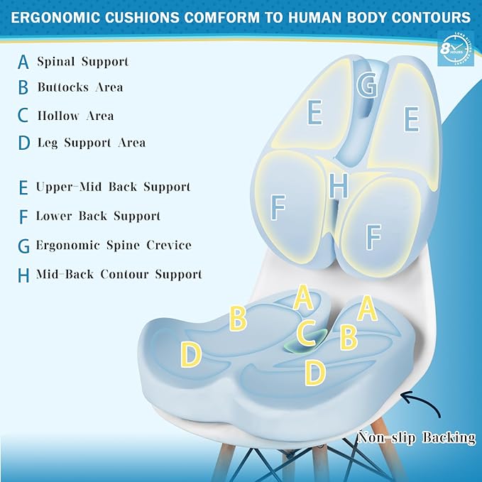 - 🏅【Versatile & Portable】Our Seat Cushion & Lumbar Pillow Combo is ideal for long office hours, helps reducing fatigue and enhance work efficiency. The chair pillows are also suitable for traveling by car or airplane, playing video games at home, or fixing to a wheelchair for a more comfortable sitting experience. Our cushions are essential for anyone seeking extra support and padding in their chair. An ideal birthday or holiday gift for friends, workmates, parents, grandparent, and teenagers.
