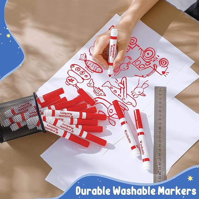 - Versatile Conical Tip Design: the tip of these washable markers adopts a conical design, ideal for coloring empty areas with the sides, and also for drawing thin lines or dots; This can help children fully demonstrate their imagination and creativity