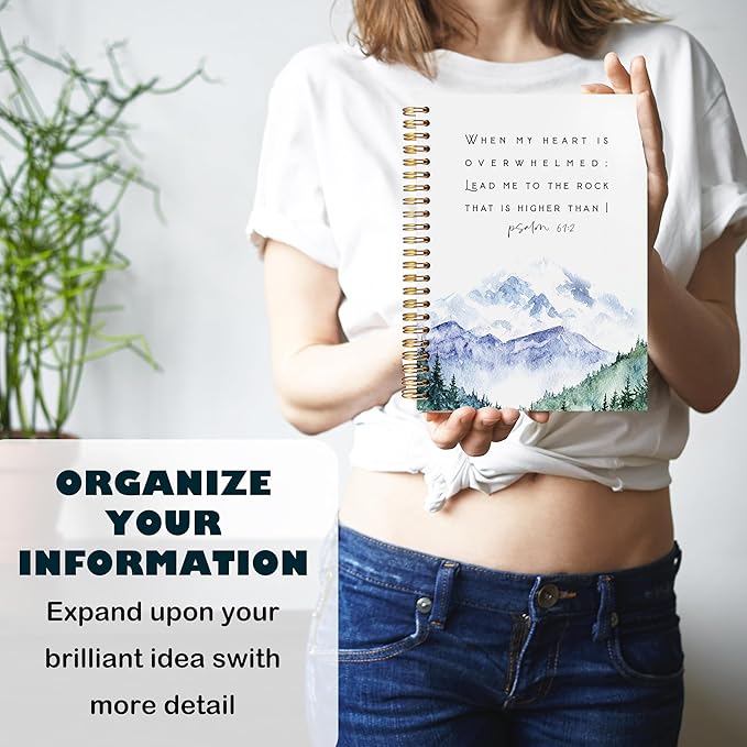 BearCake Christian Notebook Journal, Prayer Journal for Women, Lead Me To the Rock That is Higher Than I Bible Notebooks for Note Taking, Watercolor Mountain Hardcover Spiral Notebook 5.5x8.3