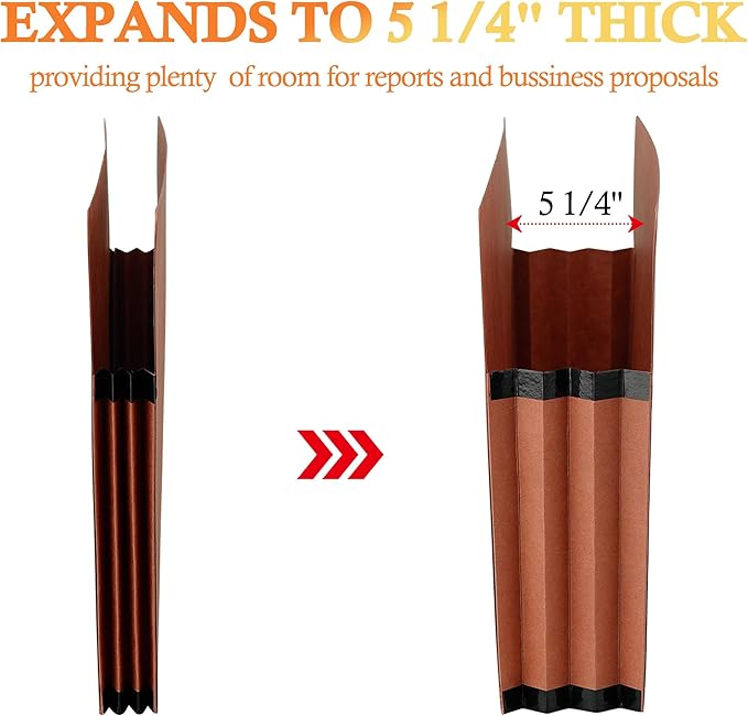 - Size:The accordion folder is 12"H x 9.5"W,the standard unfolded size is 3.5",and the maximum unfolded size is 5-1/4 inches,providing you with ample storage capacity to meet your daily needs.