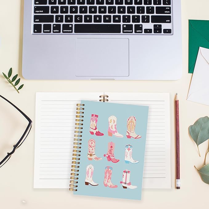 BearCake Cowgirl Boot Notebook, Cowgirl Stuff, Cowgirl Gifts, Western Office Supplies, Western Stuff for Women, Boho Western Notebook Journal 5.5x8.3 blue