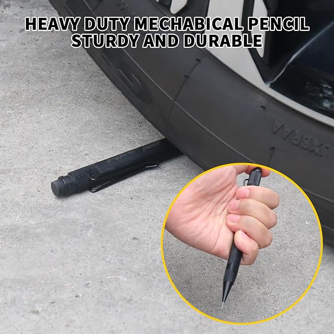 - 🖊Heavy-Duty Tip: This heavy duty mechanical pencil with a robust aluminum tip and lightweight durable barrel, perfectly balanced for a comfortable writing experience, this mechanical pencil withstands extreme conditions, including an 9,000-pound forklift crush test, making it reliable for demanding environments.