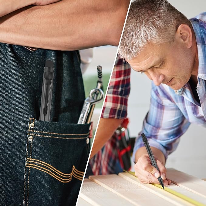 - 🖊Sturdy Clip: The heavy-duty stainless steel clip ensures secure attachment to your notebook or tool belt for easy portability. A high-quality eraser allows for clean corrections, 4 replacements included in package. If this carpenter pencil can no longer be used due to objective factors, please contact us for a replacement.