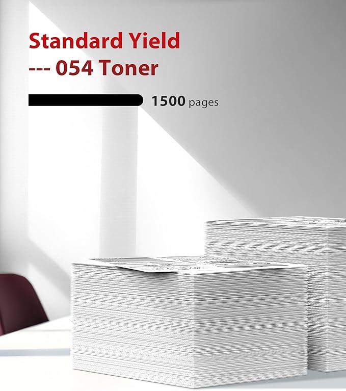 - Page Yield: Up to 1,500 pages per replacement for Canon 054 Black toner based on 5% coverage, Letter/A4