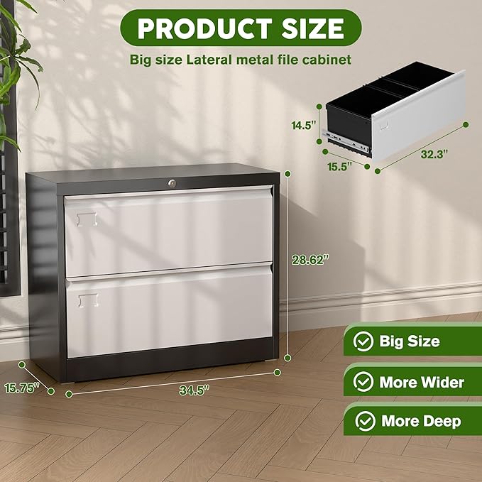 - [All-steel Stable-Rustproof] 2 drawer lateral file cabinet has a reinforced steel frame with a corrosion and stain-resistant powder coat, Rugged and not easily deformed,which is ideal for long-term use.