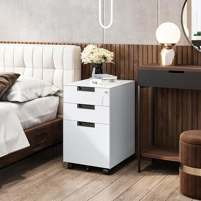 - CAN BE PLACED EVERYWHERE - Thanks to the compact design and five flexible wheels of this filing cabinet, you can easily putting it under the desk, next to the sofa, in the bedroom to using as a under desk file cabinet, a bedside tables etc.
