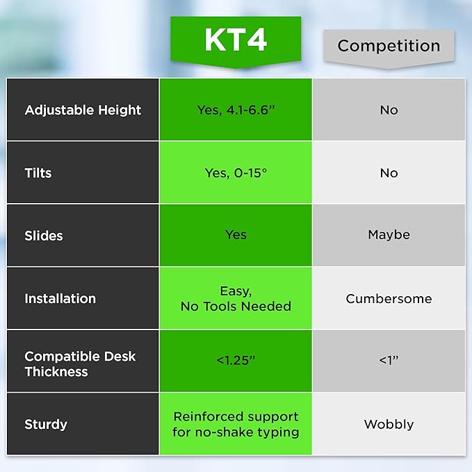 - IMPROVE YOUR TYPING POSTURE: height adjustable keyboard tray under desk clamp properly positions keyboards at elbow height so you can sit up straight and look you monitor in the eye.