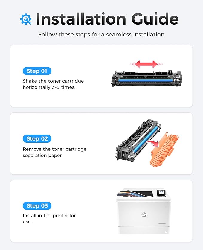 - The latest chip version: The JCTONER toner cartridges are equipped with the latest version of built-in chips, ensuring perfect compatibility between each toner cartridge and the printer. This enables you to print efficiently while maintaining stability and reliability, making installation convenient without the need for manual adjustments. All JCTONER toner cartridges have undergone strict quality testing and have obtained ISO9001 certification. High-quality toner cartridges can meet the demand for high printing volume. The fine toner ensures clear and stain-free printing results and extends the lifespan of the printer. You can purchase with confidence.