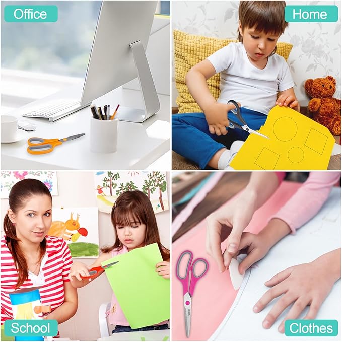 - Multipurpose/ Vibrant 6 Pack Scissors: black-purple. Different Colored Scissors, Can Be Used In Different Places. Ease to holding, work perfectly for their crafting for many different tasks. Comfortable to use in: Office, School, House Household, High/Middle School Students Teacher, Sewing Fabric Art Craft DIY, laundry room, bathroom, garage, kitchen or other occasions supplies.