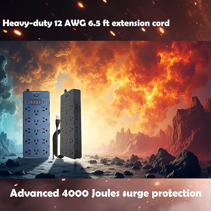 - Advanced 4000 Joules Surge Protection featuring 8-point safety protection, including fire resistance, overload, over-current, over-voltage, short-circuit, and over-heating protection.