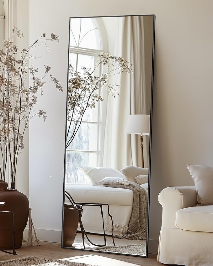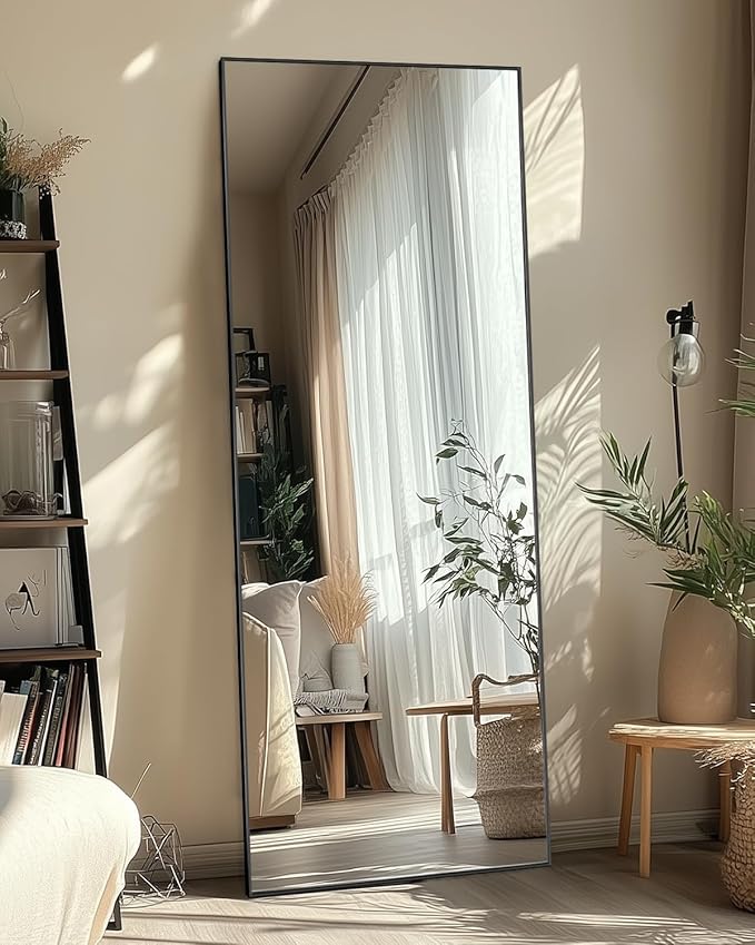 Antok Full Length Mirror, 59"x18" Floor Mirror, Floor Standing Freestanding Full Body Mirror with Stand for Bedroom, Hanging Mounted for Living Room Cloakroom, Black
