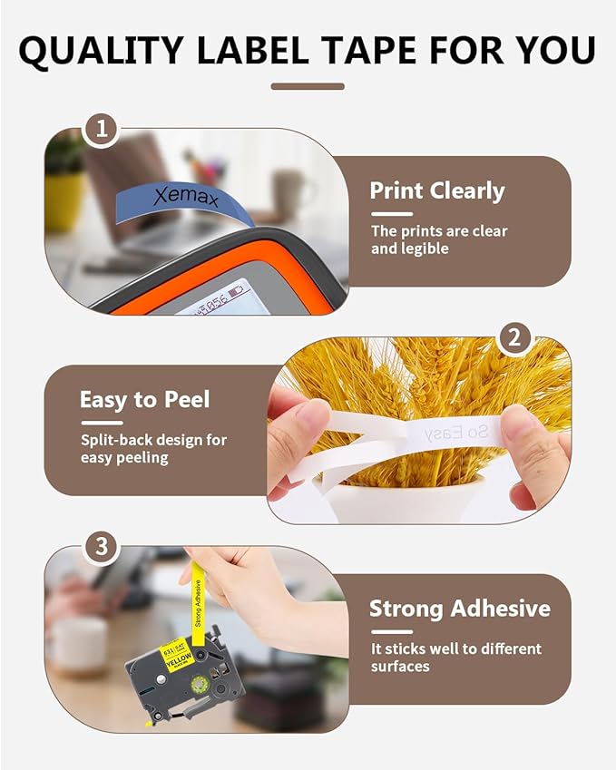 - Wide Applications: These 12mm 0.47" laminated tze color label tapes are suitable for indoor and outdoor use. The ptouch tape 12mm 0.47" color label is widely used in home, offices, schools, businesses, gardens, industrial, and more