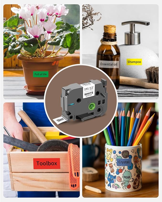 - Wide Applications: These 18 mm 0.7" Multi-Color label tapes are suitable for indoor and outdoor use. The ptouch tape 18mm 0.7" label is widely used in home, offices, schools, businesses, gardens, industrial, and more