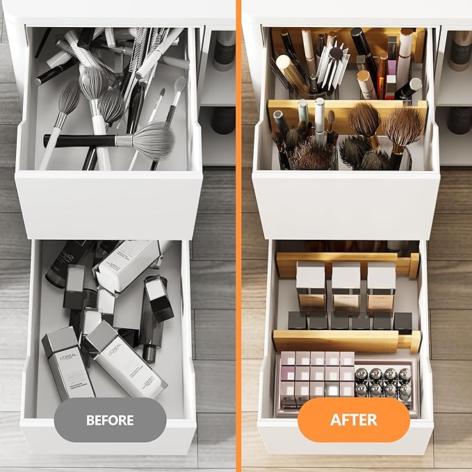 - Premium Bamboo Material: These bamboo drawer dividers are made of high quality bamboo material, natural color, tough texture, smooth surface, well made and long-lasting; Simply wipe it with a damp cloth