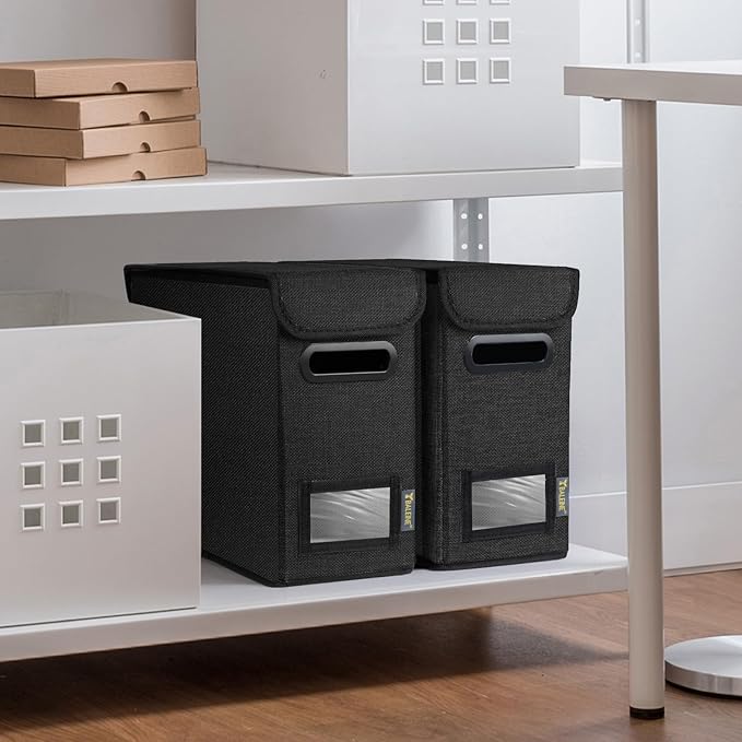- [OPTIMIZED DESIGN] Designed with convenience in mind, our file storage box helps to elevate your efficiency and organization. The transparent label slot allows for quick identification of the contents stored inside the box. The collapsible design and sturdy handles ensure effortless storage and movement, making it convenient and easy to use