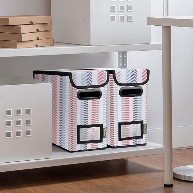 - [OPTIMIZED DESIGN] Designed with convenience in mind, our file storage box helps to elevate your efficiency and organization. The transparent label slot allows for quick identification of the contents stored inside the box. The collapsible design and sturdy handles ensure effortless storage and movement, making it convenient and easy to use