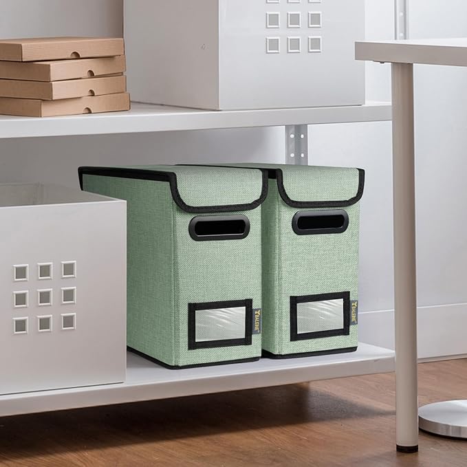 - [OPTIMIZED DESIGN] Designed with convenience in mind, our file storage box helps to elevate your efficiency and organization. The transparent label slot allows for quick identification of the contents stored inside the box. The collapsible design and sturdy handles ensure effortless storage and movement, making it convenient and easy to use