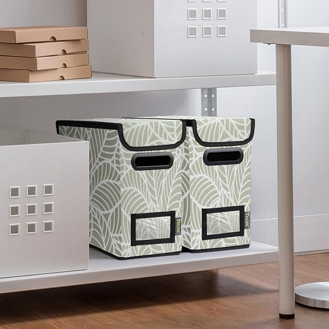 - [DURABLE MATERIAL] The outer layer of our filing box is crafted from high-quality polyester fabric and reinforced with thick cardboard in the middle. This construction ensures that the box maintains its shape and provides better bearing capacity for important documents and files. Its textured appearance can also serve as a stylish decorative element in any office or home