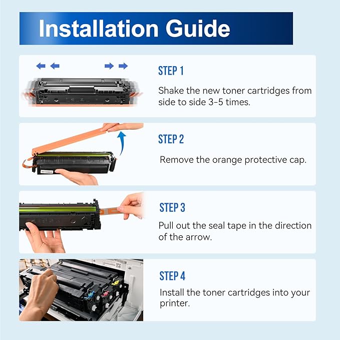 - No Chip: Our 218A toner cartridges 4 Pack are do NOT come with chip, please remove the original HP 218A or HP 218X CHIP and install it into our new toner cartridge. Please refer to the user guide we provided for the specific methods of installing